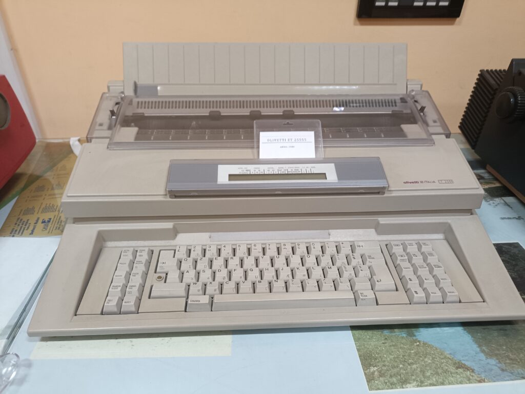 L’Olivetti ET 2500 è una macchina per scrivere elettronica prodotta dall’azienda italiana Olivetti. A differenza delle macchine per scrivere meccaniche, l’Olivetti ET 2500 è elettronico. Questo significa che utilizza circuiti elettronici per generare caratteri sul foglio di carta anziché l’azione meccanica diretta. Potrebbe essere dotato di uno schermo display che consente di visualizzare ciò che si sta digitando prima di stampare effettivamente il testo su carta. Molti modelli elettronici, inclusi l’Olivetti ET 2500, avevano una memoria interna che poteva conservare una quantità limitata di testo digitato. Questo facilitava la revisione o la correzione del testo prima di stamparlo. Anche se elettronico, l’Olivetti ET 2500 probabilmente manteneva un design relativamente portatile rispetto alle macchine per scrivere più vecchie, rendendolo adatto per l’uso su scrivanie o trasportabile per lavoro al di fuori dell’ufficio L’Olivetti ET 2500 è stato prodotto negli anni ’80, ma con l’avanzare della tecnologia, le macchine per scrivere sono diventate sempre più obsolete, sostituite da computer e software di elaborazione testi più avanzati.