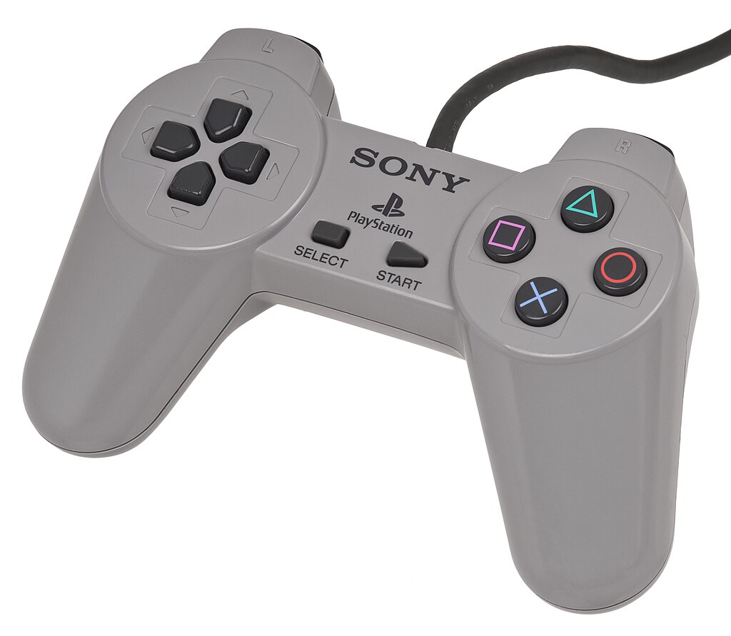 Controller Originale: Questo è stato il primo controller della PS1, caratterizzato da leve direzionali, quattro pulsanti principali (triangolo, cerchio, croce e quadrato), e i tasti L1, L2, R1, e R2.
