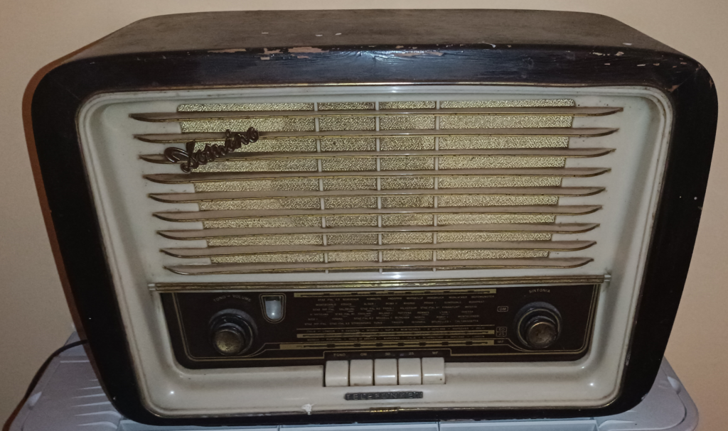 La radio è un apparecchio elettronico che permette di trasmettere e/o ricevere onde radio. In particolare, se è in grado solo di trasmettere è chiamato “radiotrasmettitore” o “radiotra«radiotrasmittente”, se è in grado solo di ricevere è chiamato “radioricevitore” o “radioricevente” smittente”, “radiotrasmittente”, se è in grado solo di ricevere è chiamato “radioricevitore” o “radioricevente” La radio fa parte della categoria dei cosiddetti “elettrodomestici bruni” o “elettrodomestici marroni”, ovvero apparecchi elettrici per la comunicazione e lo svago, a cui appartengono anche il televisore, il telefono, il giradischi e il videoregistratore. Tale classificazione deriva dai colori dei materiali con i quali storicamente erano costruiti tali tipi di elettrodomestici, ovvero involucri di legno o materiali sintetici marroni o neri. Il funzionamento di un apparecchio radio consiste nel ricevere un segnale radio di frequenza prestabilita (il canale) e questo avviene con la “sintonia”. Quindi il segnale inserito nell’onda elettromagnetica in fase di trasmissione (modulazione) deve essere estratto per mezzo della “rivelazione” per essere destinato all’uso finale, per esempio emesso come suono da un altoparlante.